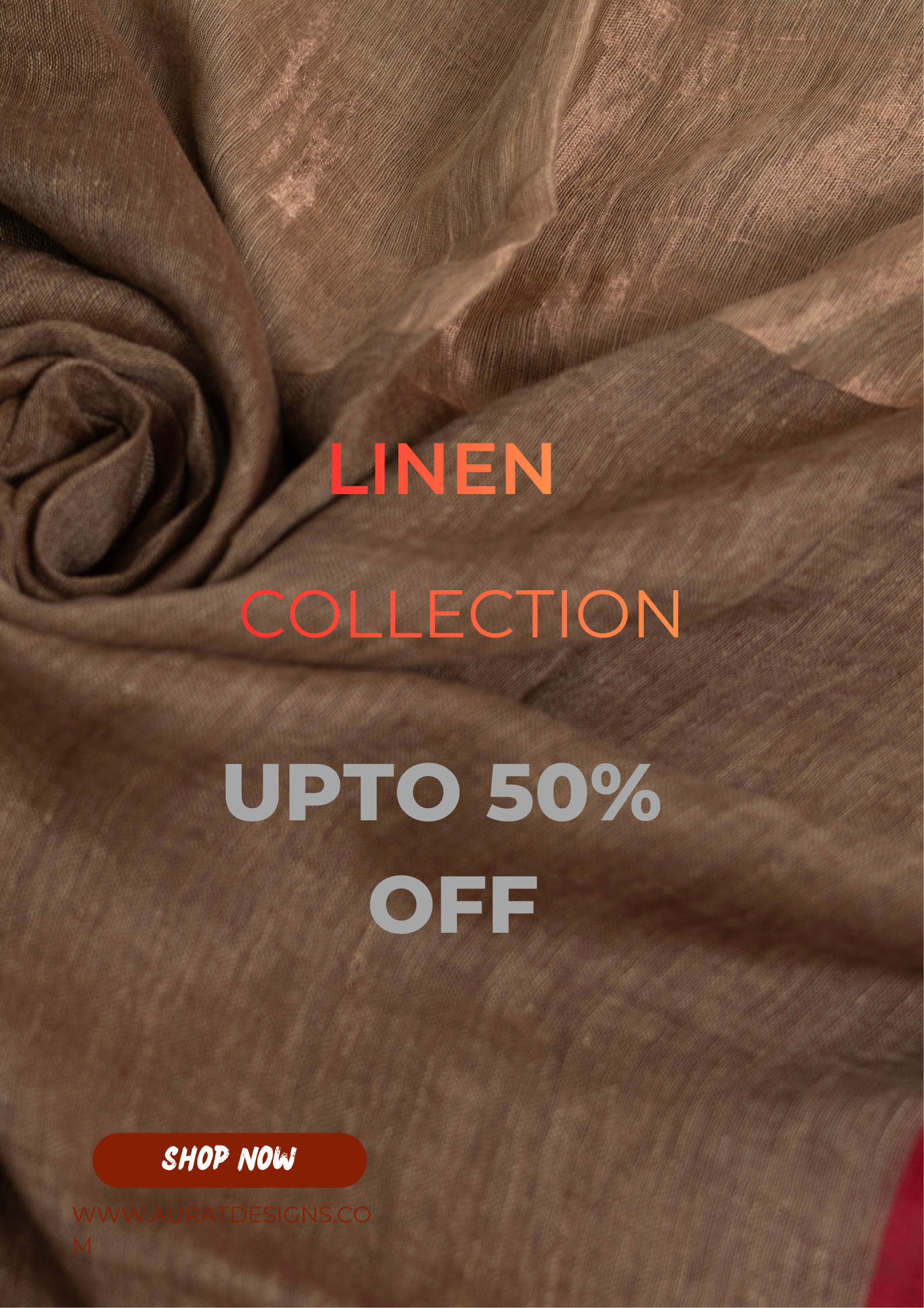 Orange color pure linen saree-S191