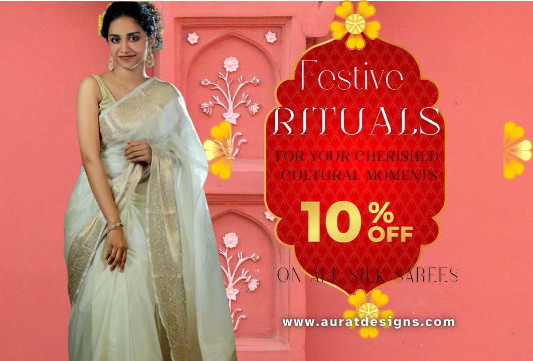 Celebrate tradition with grace and simplicity. Our minimalist silk sarees are designed for festive gatherings, pujas, and cherished cultural moments.