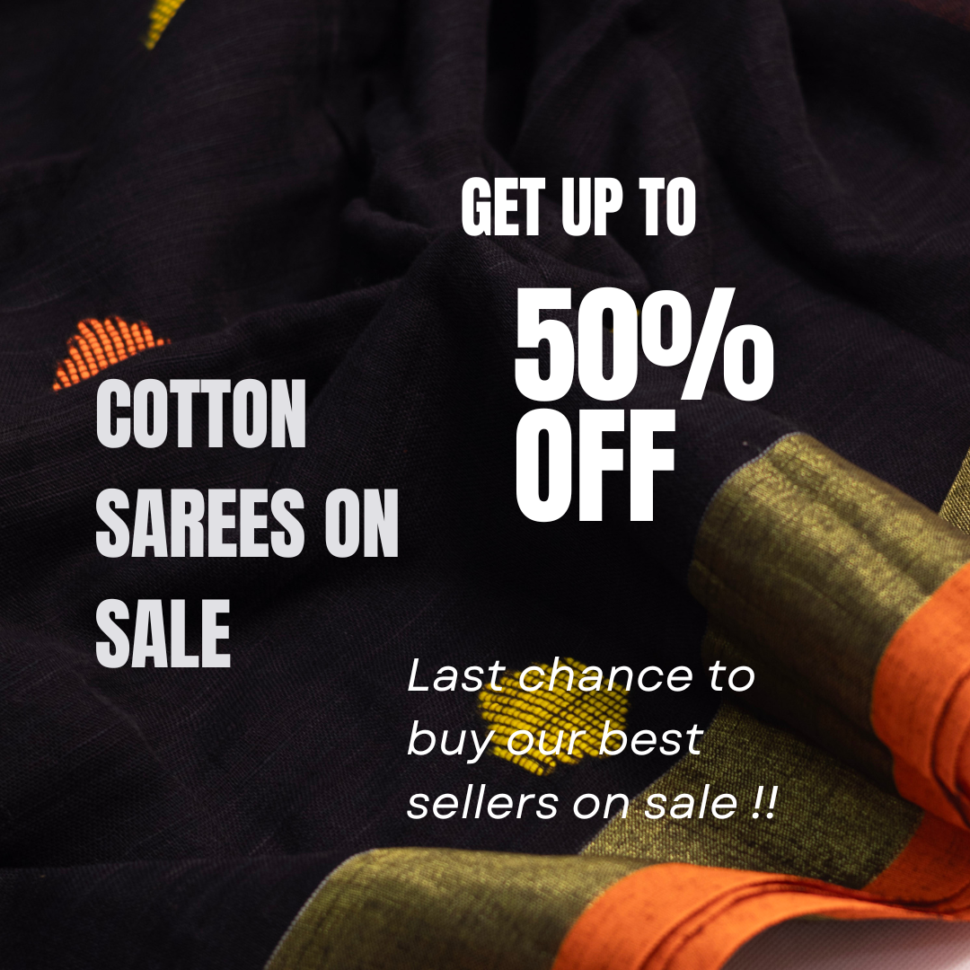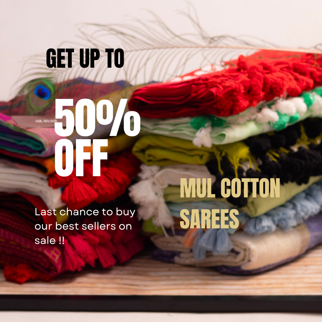 Last chance to buy our best seller mul cotton sarees on sale upto 50% off