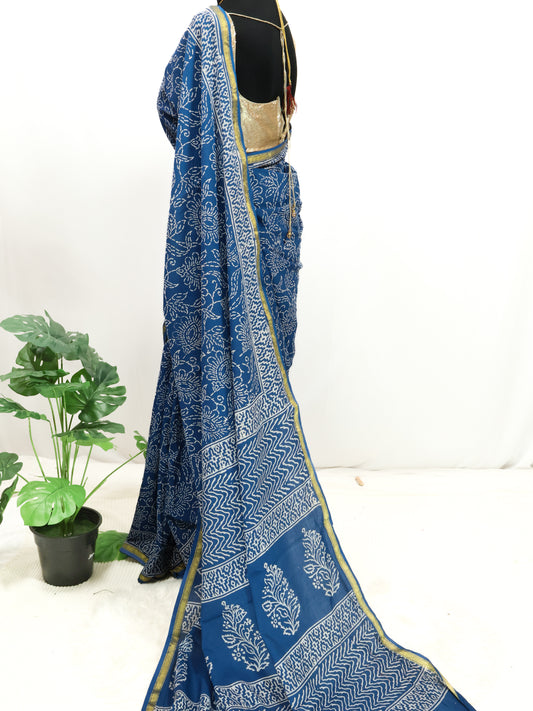 Bagru/dabu printed Linen-cotton saree-S151(E)