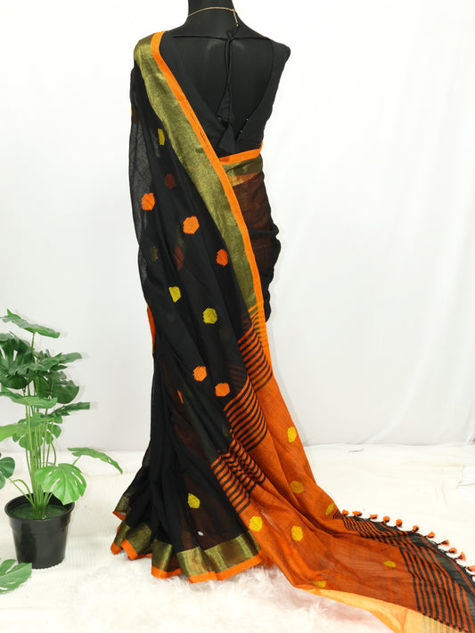 - Other Specialty Cotton Sarees – Includes a variety of regional weaves like Chanderi Cotton, Kota Cotton, Mulmul Cotton, and more, each with its unique charm and craftsmanship.