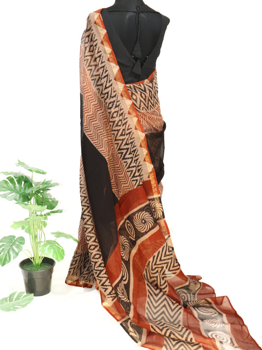 Bagru/dabu printed Linen-cotton saree-S152(D)