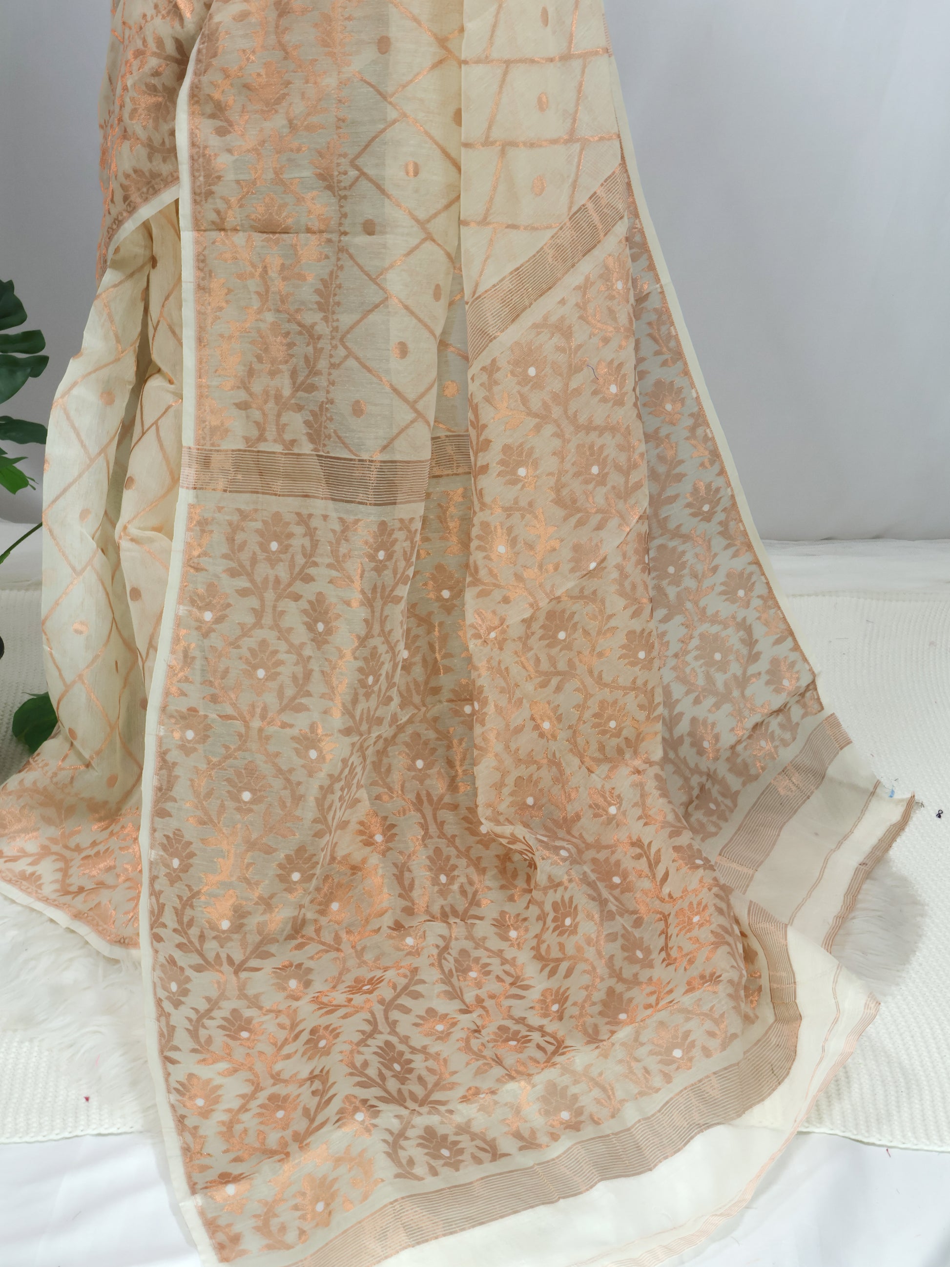 Off white Soft Bengal Dhakai silk saree -S128