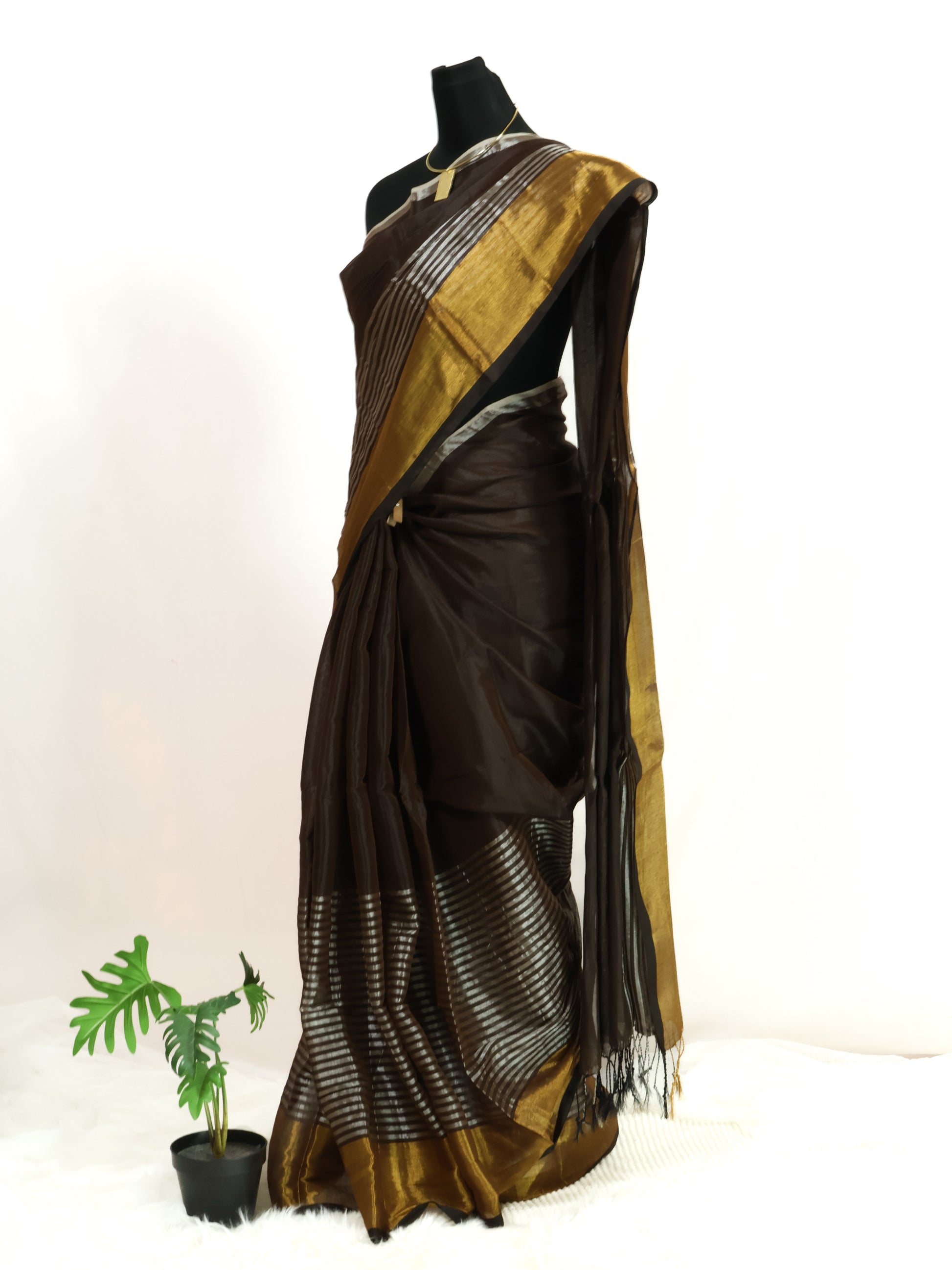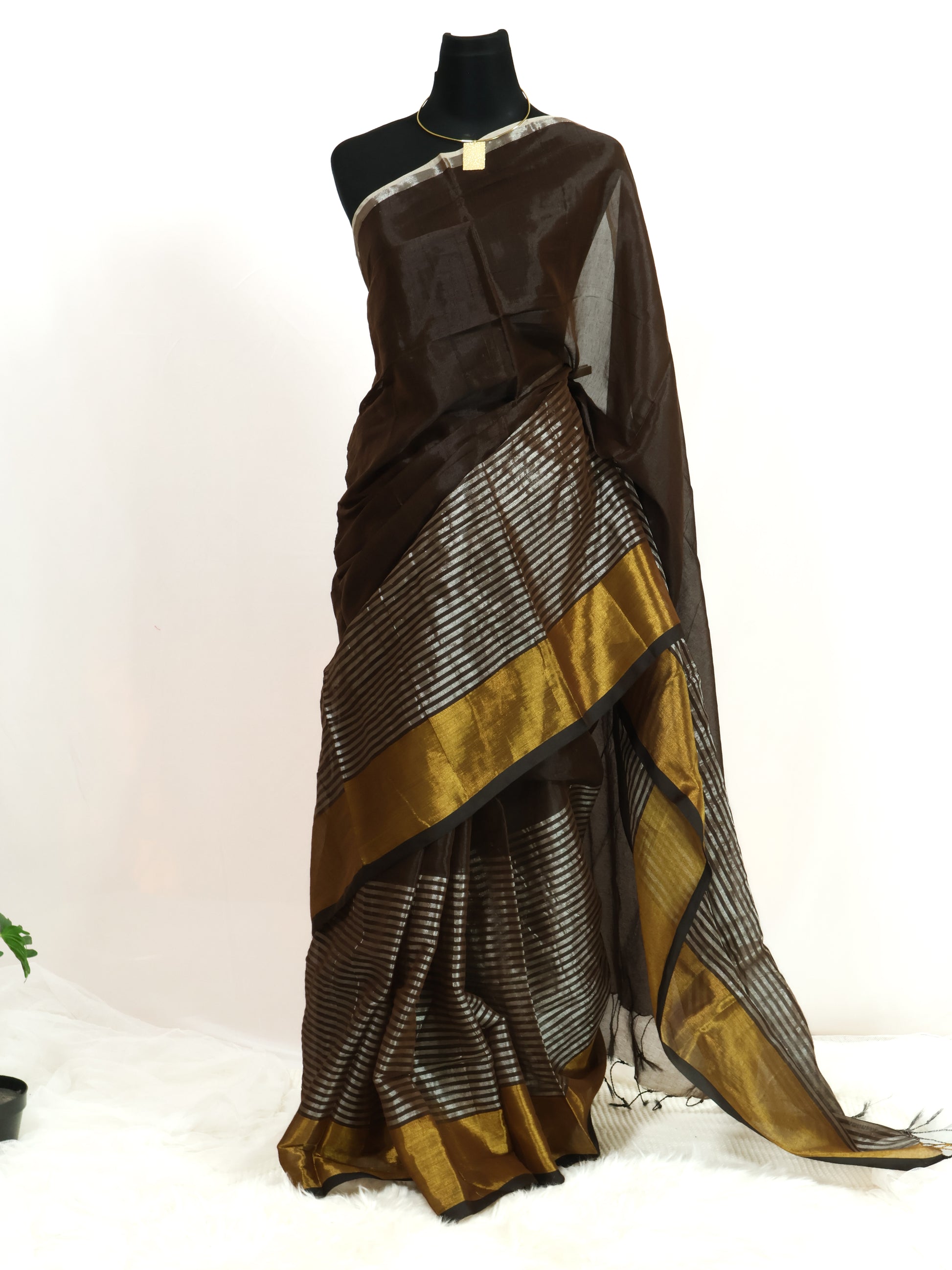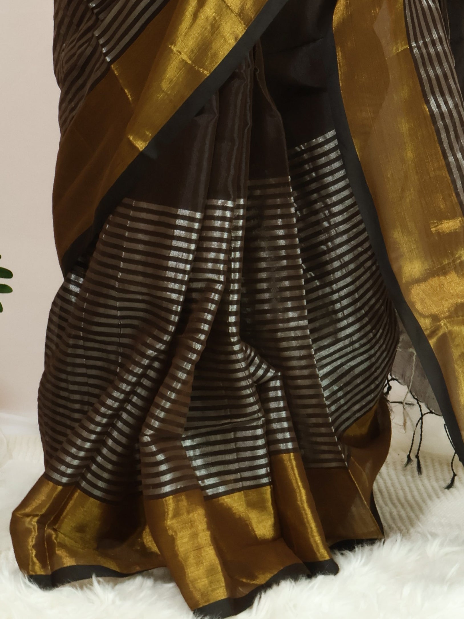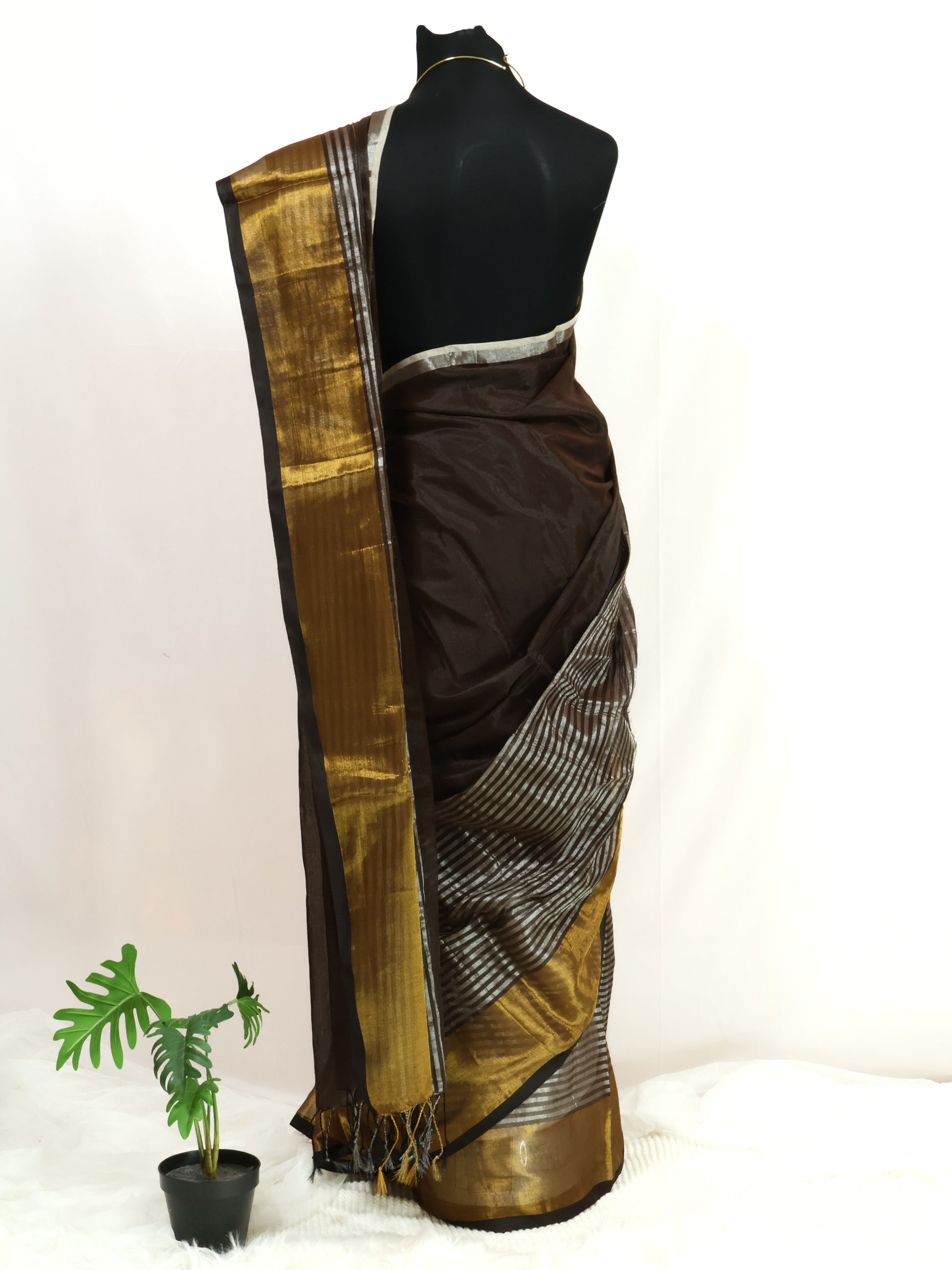 Color: Black body with silver & golden stripes & border ( half plain & half stripes)