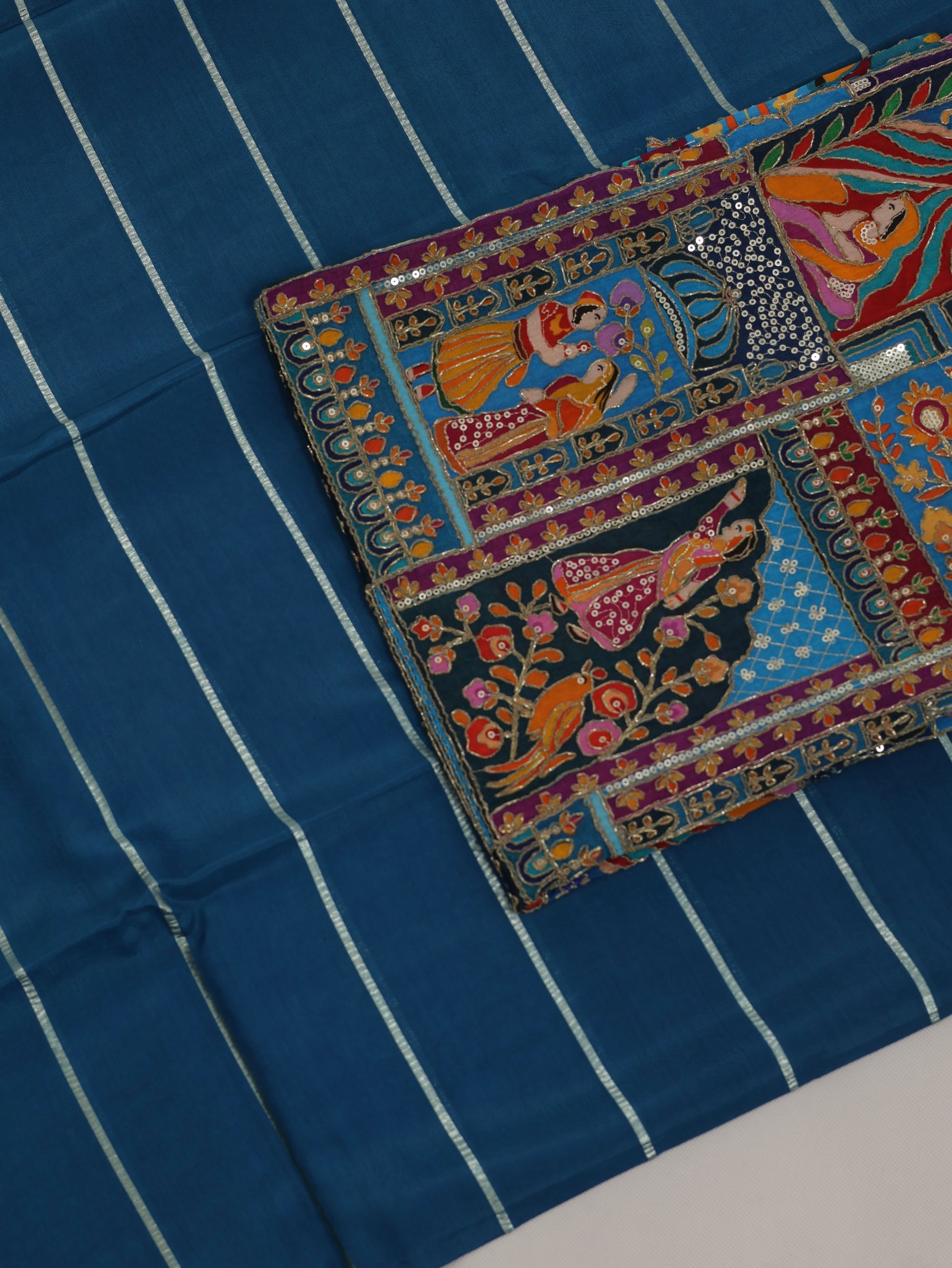 Made from soft organza silk in a deep blue tone, the saree drapes fluidly with a graceful fall that enhances movement and silhouette. The soft texture of organza silk lends a soft matte finish, creating a sophisticated look suitable for both day and evening occasions.