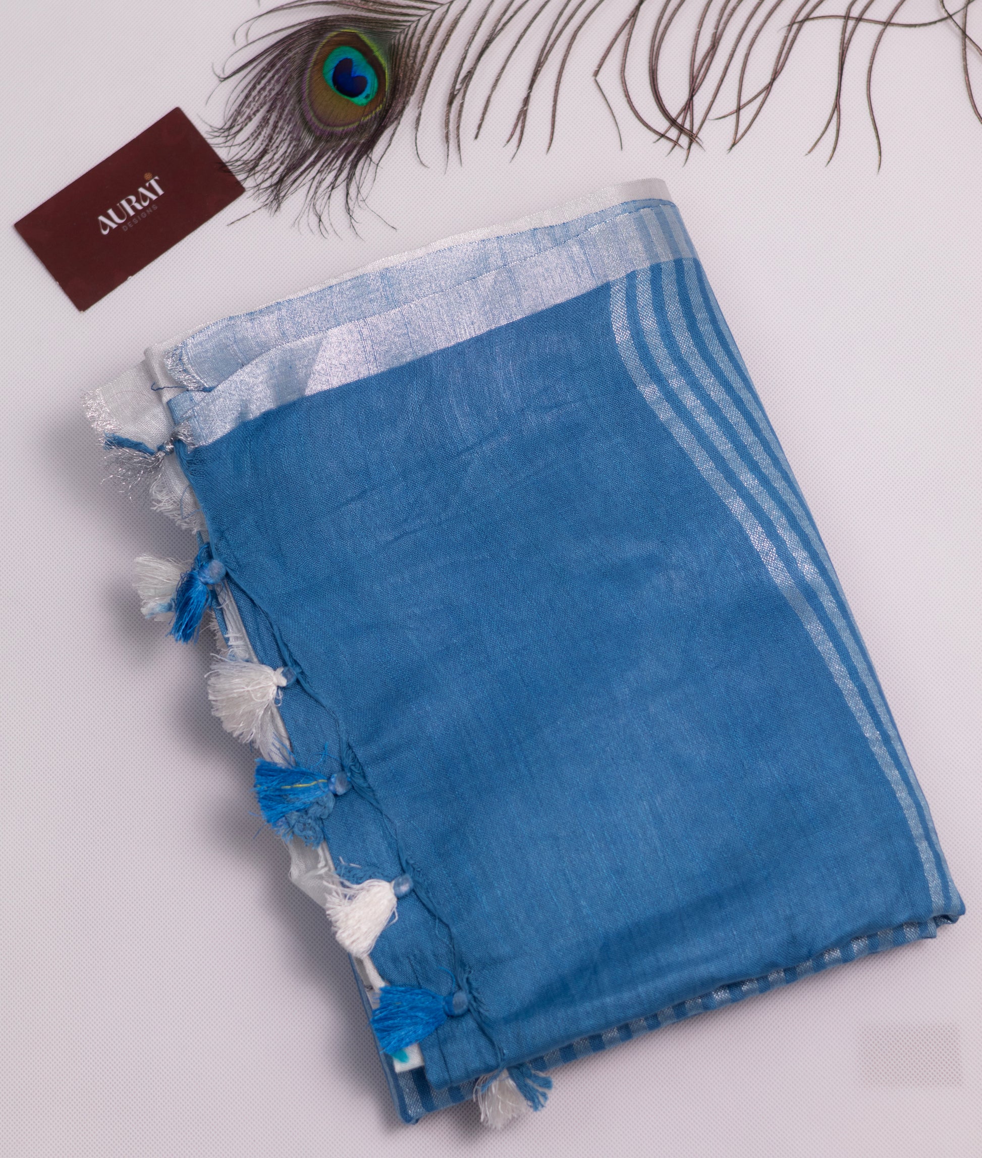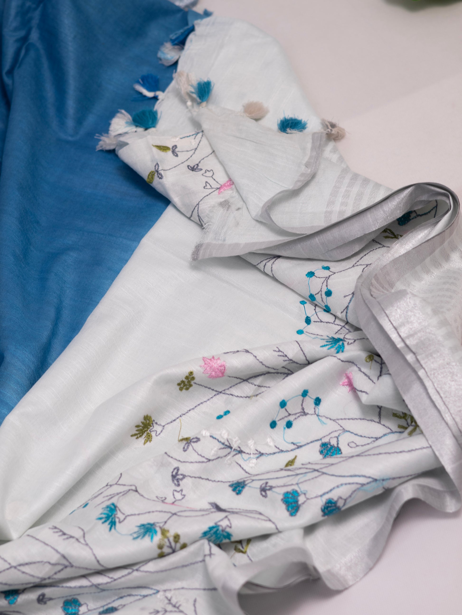 Saree work: Woven with one cotton & one linen thread embroidered saree