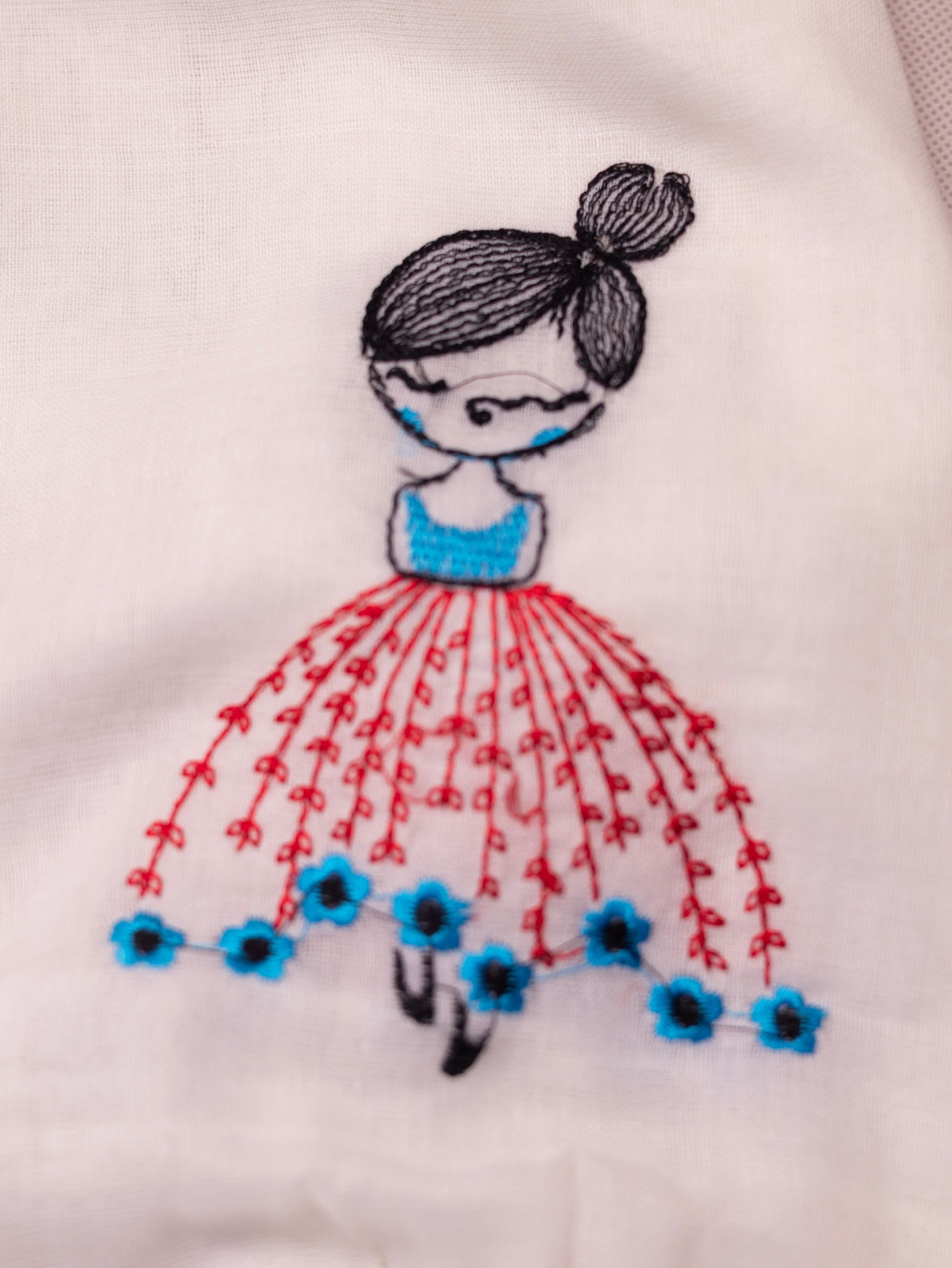 Saree work: woven mul cotton doll embroidered saree