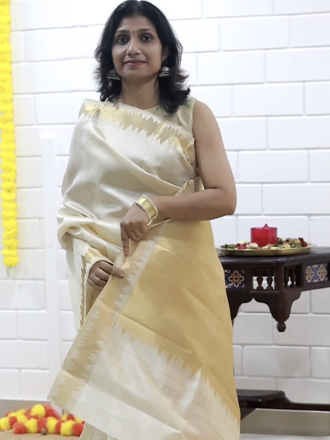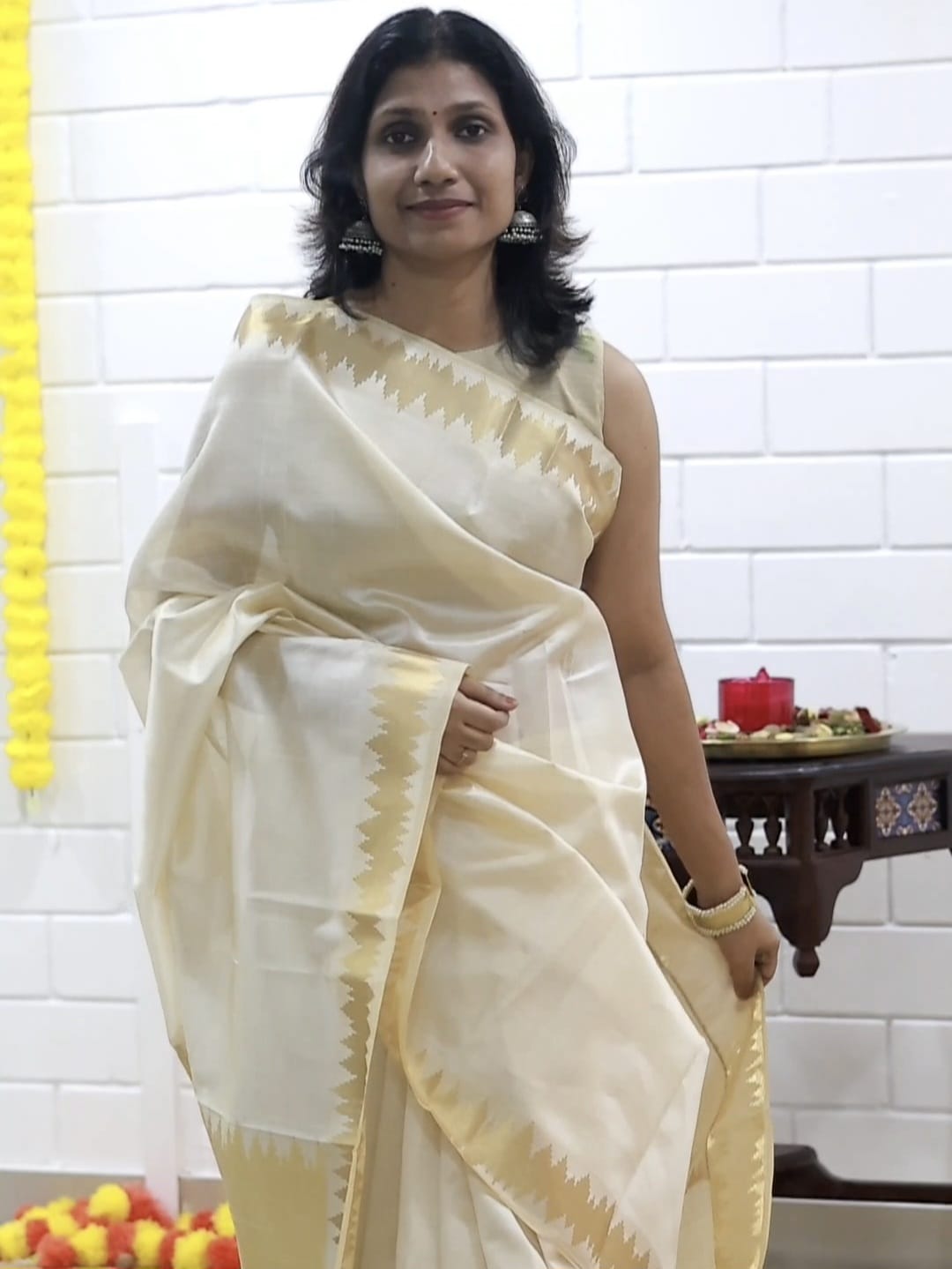 Kerala silk saree with temple border