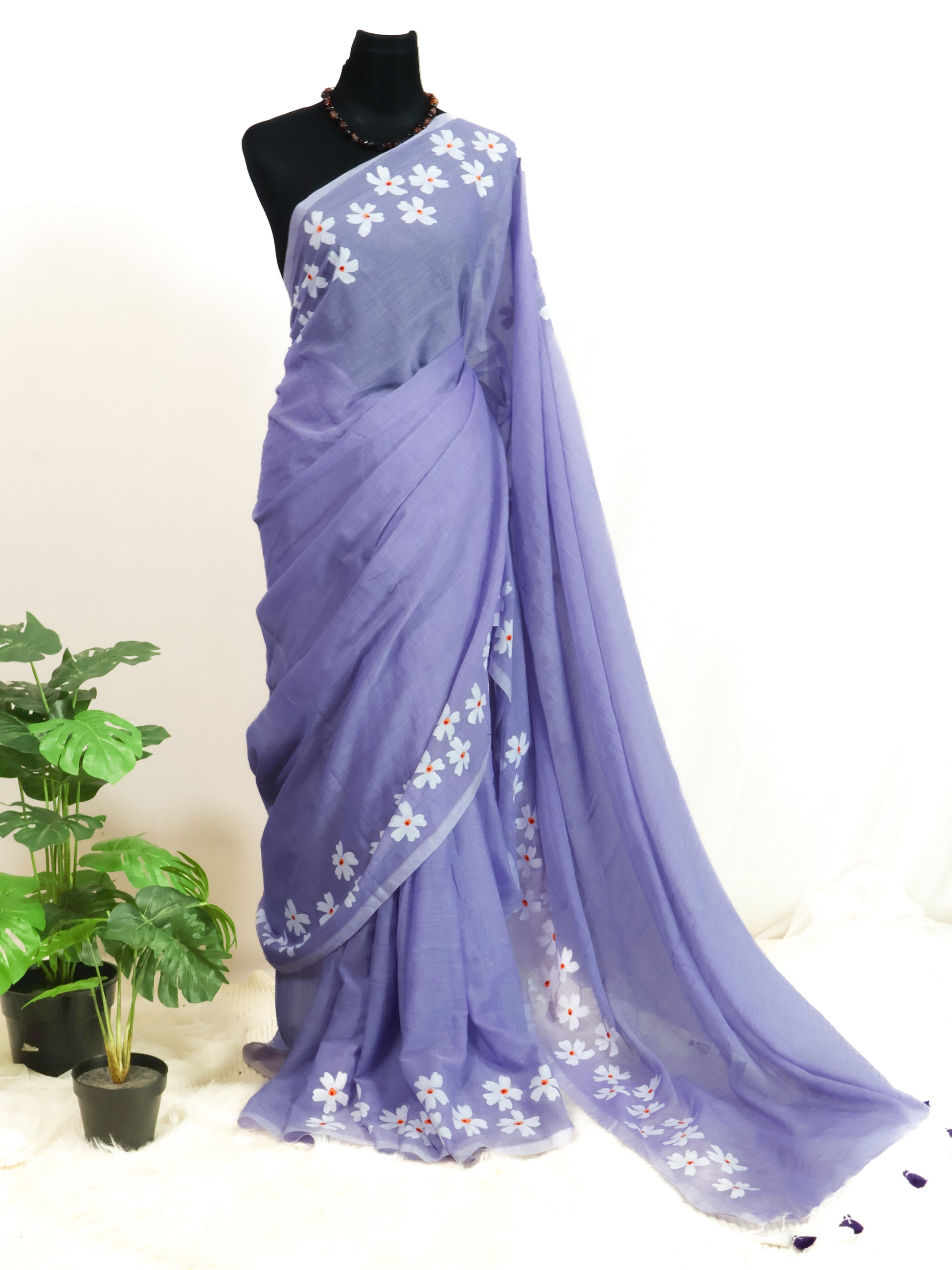 - Mulmul sarees are lightweight and delicate, designed for comfort and elegance. Handle with care to avoid damage, particularly around embellishments or intricate designs.