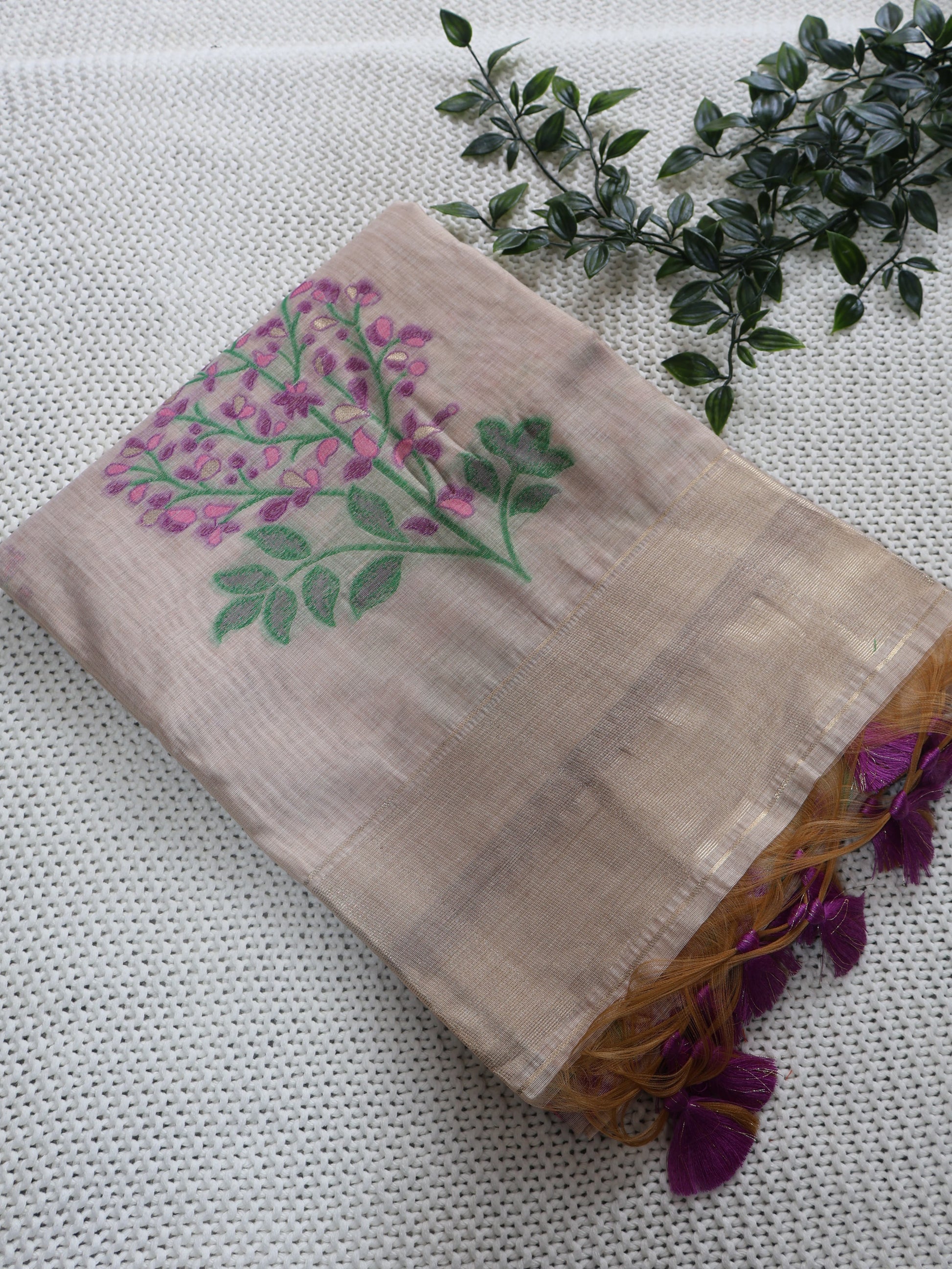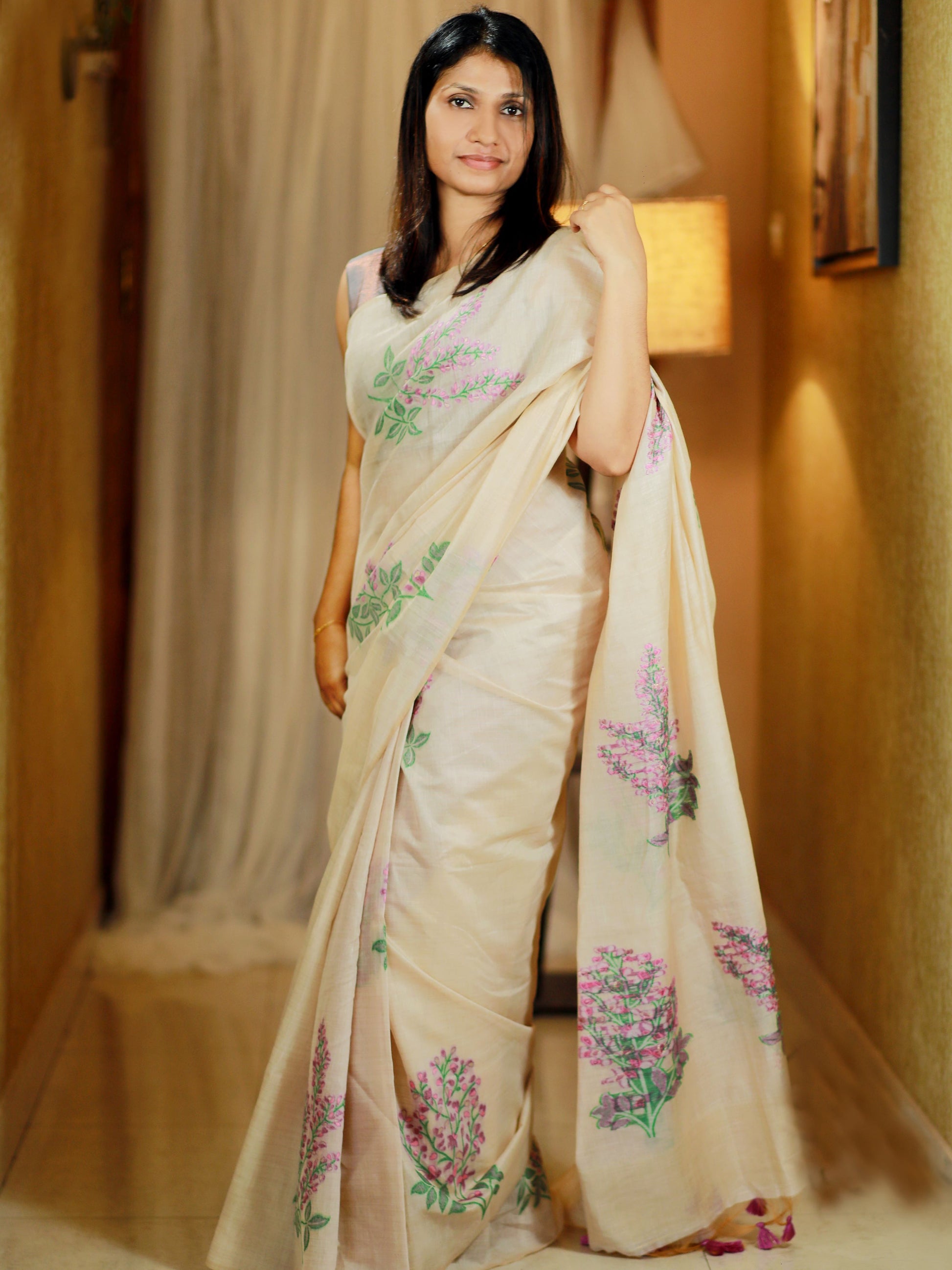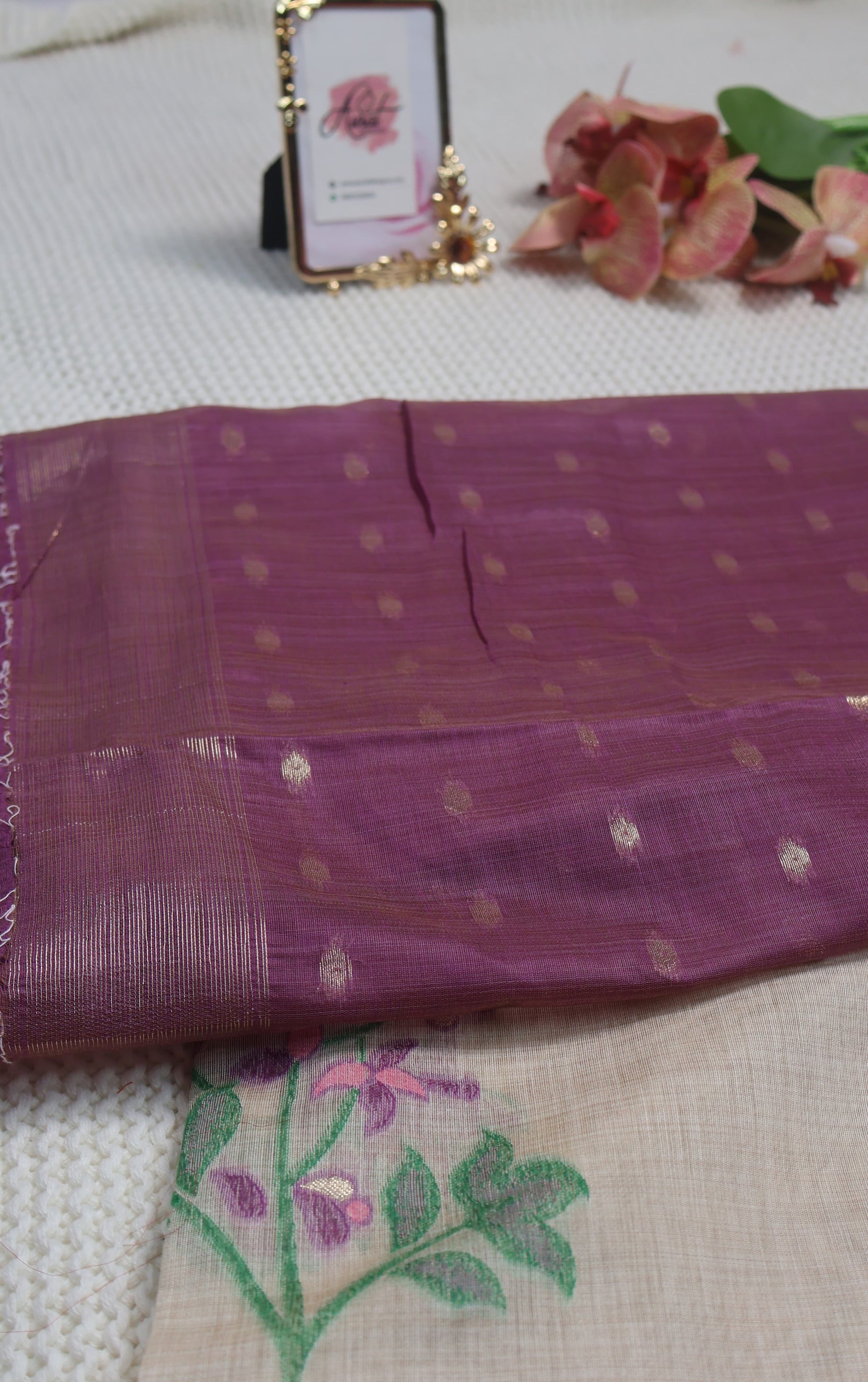 Muga cotton silk saree with thread woven Lavender flower bunch design & matching blouse