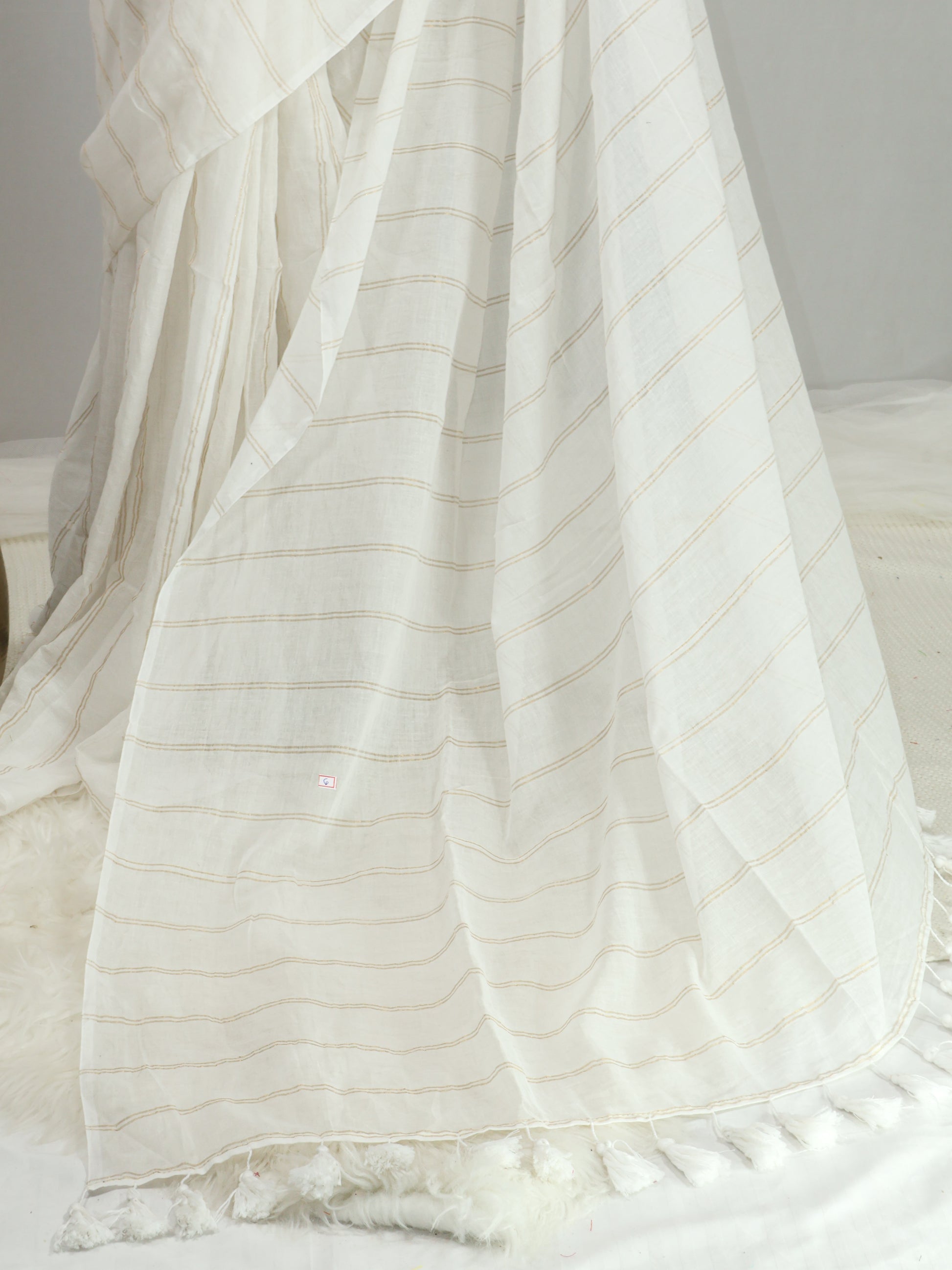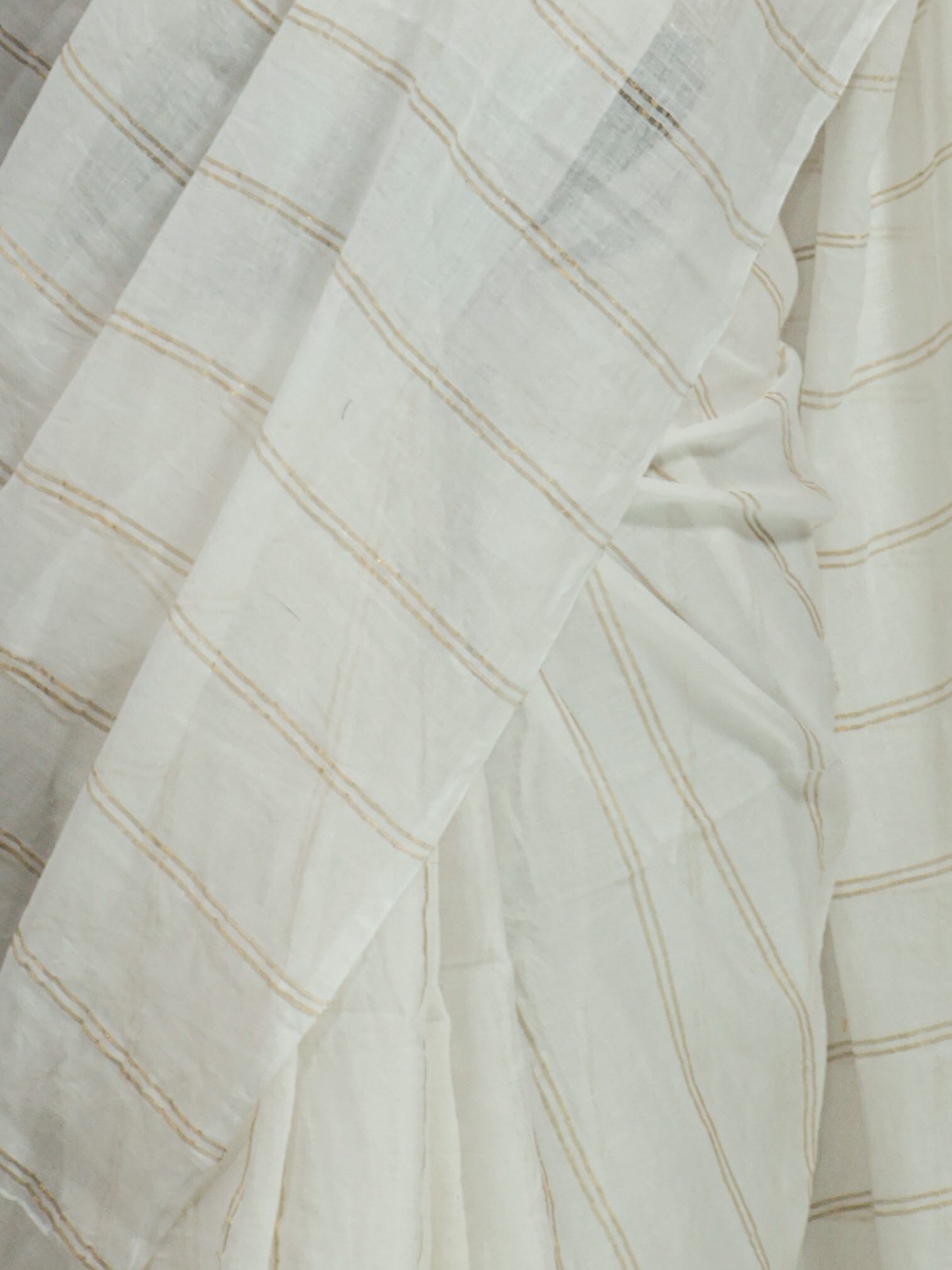 Off white goldenbody stripe mul cotton saree