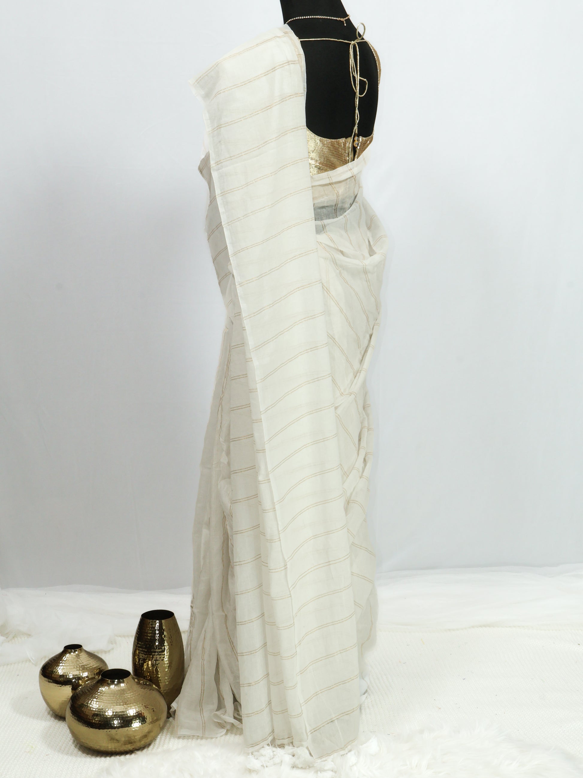 Off white goldenbody stripe mul cotton saree-S203