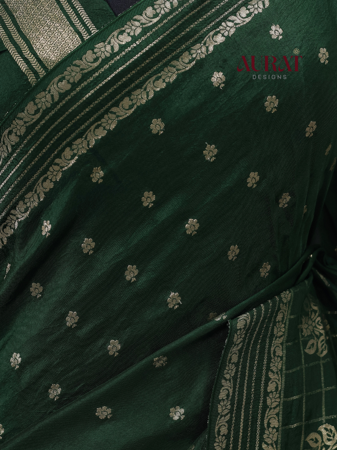 Regal Whisper – Bottle green Dola Silk Saree with Golden Zari Bhutas
