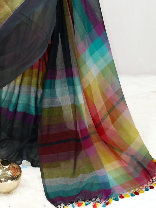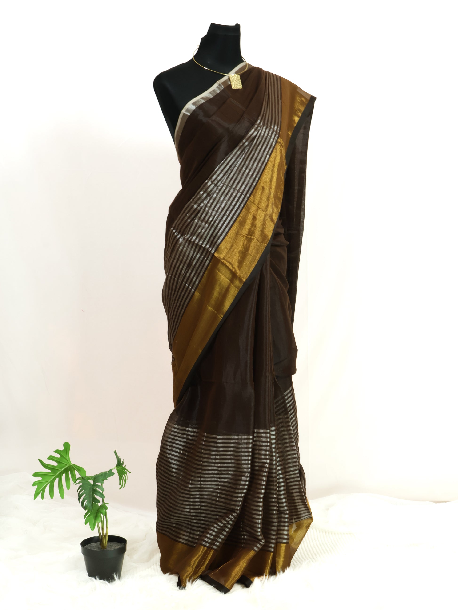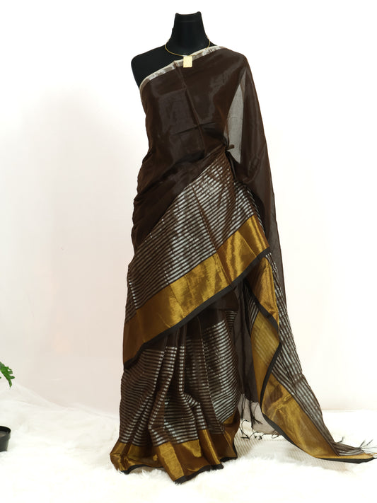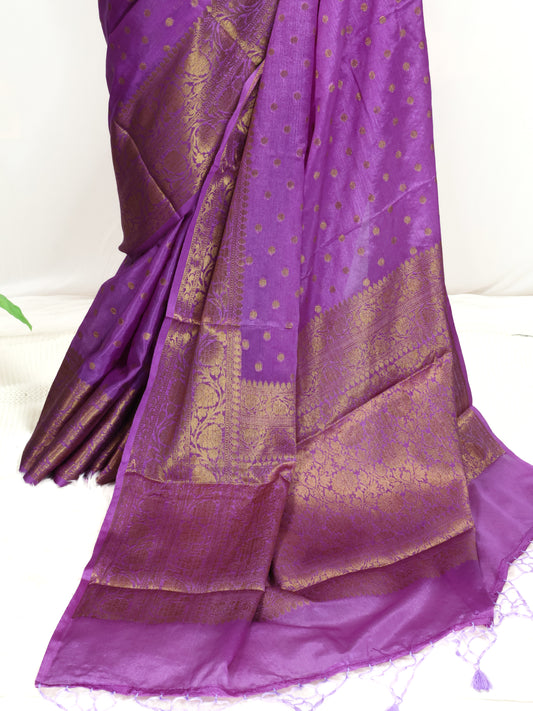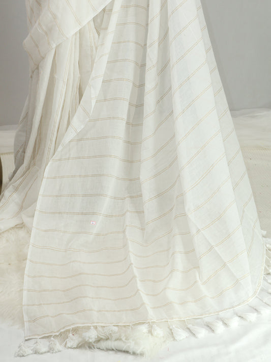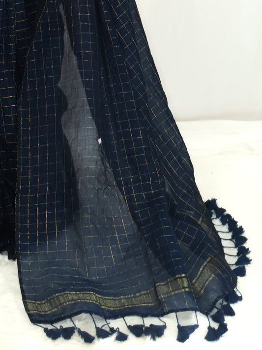 Rani pink-golden zari small box woven mul cotton saree-S201