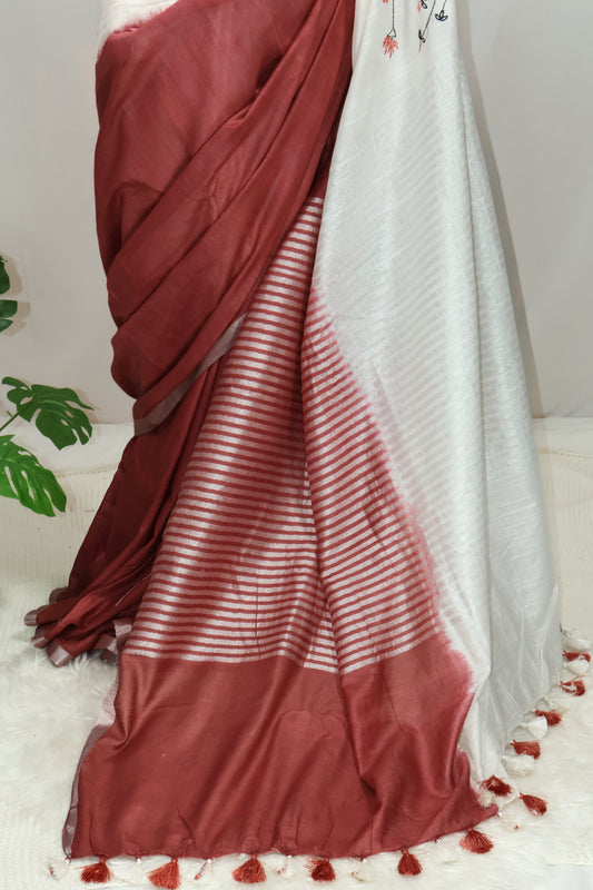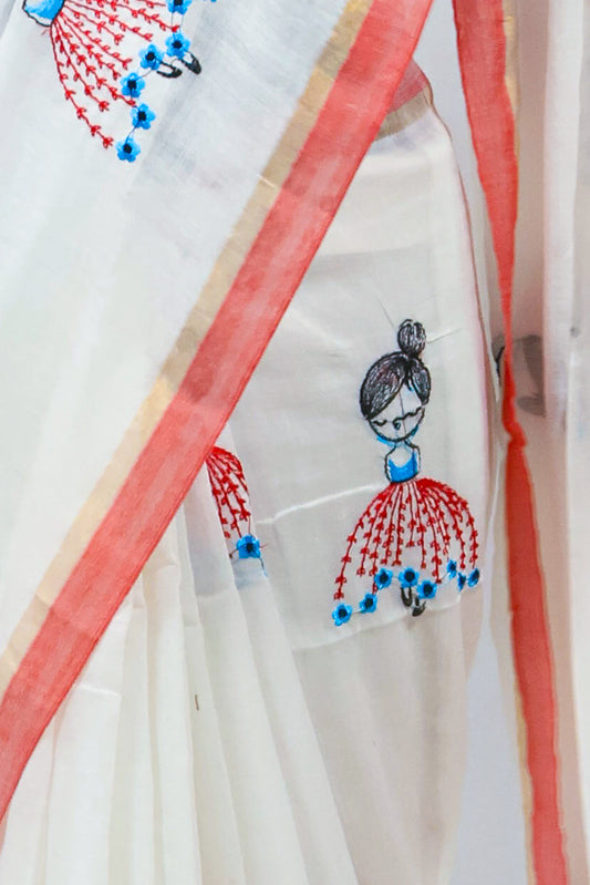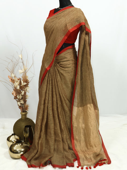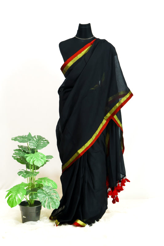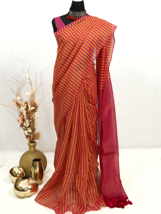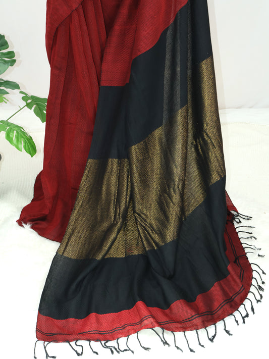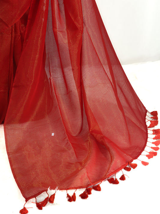 Red-rani pink-golden zari small box woven mul cotton saree-S202